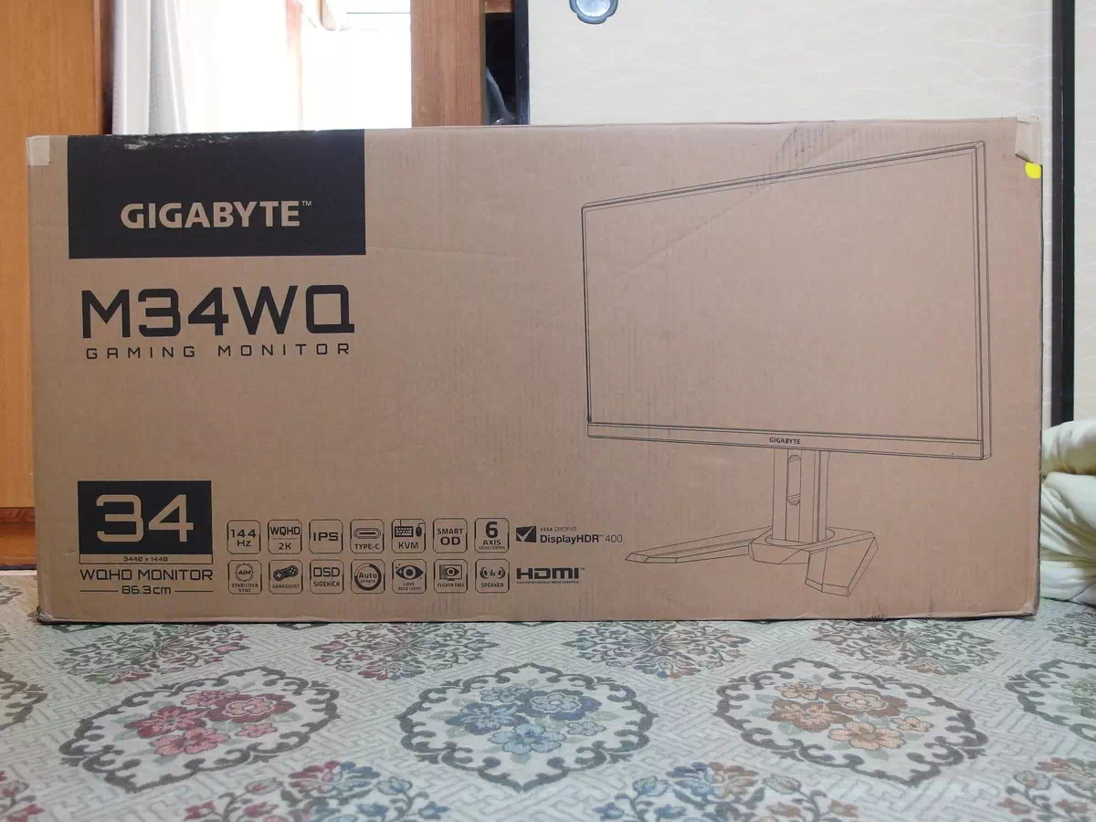 GIGABYTE M34WQというディスプレイでした。