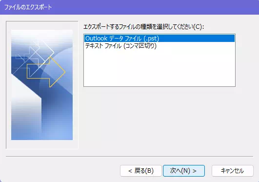 次はOutlookデータファイル(.pst)を選択して次へ。