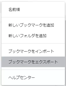 ブックマネージャが開くと、メニュー右上の管理ボタン(…)から「ブックマークをエクスポート」を選択。