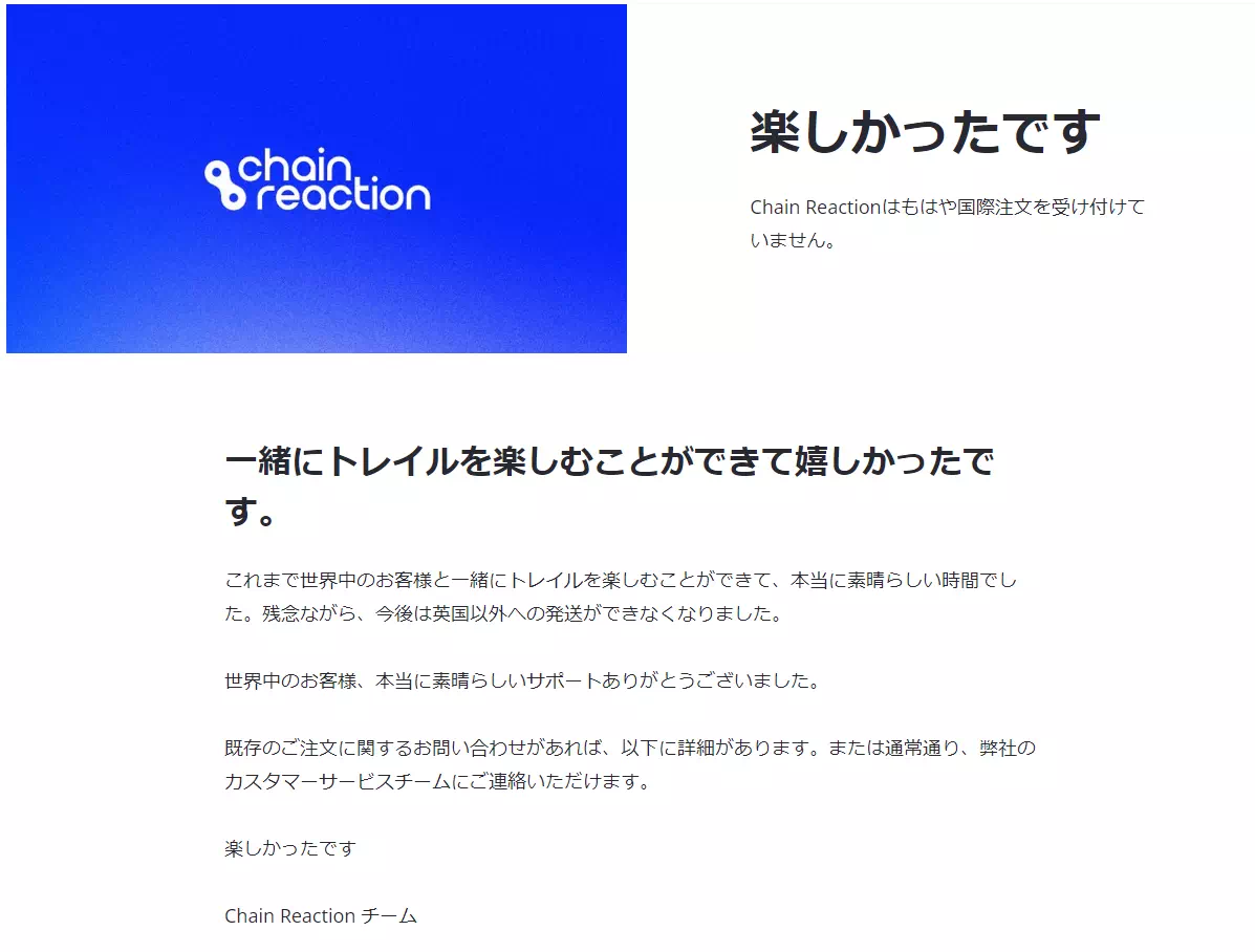もしかして、もう一つの通販サイトChain Reaction Cycleも?