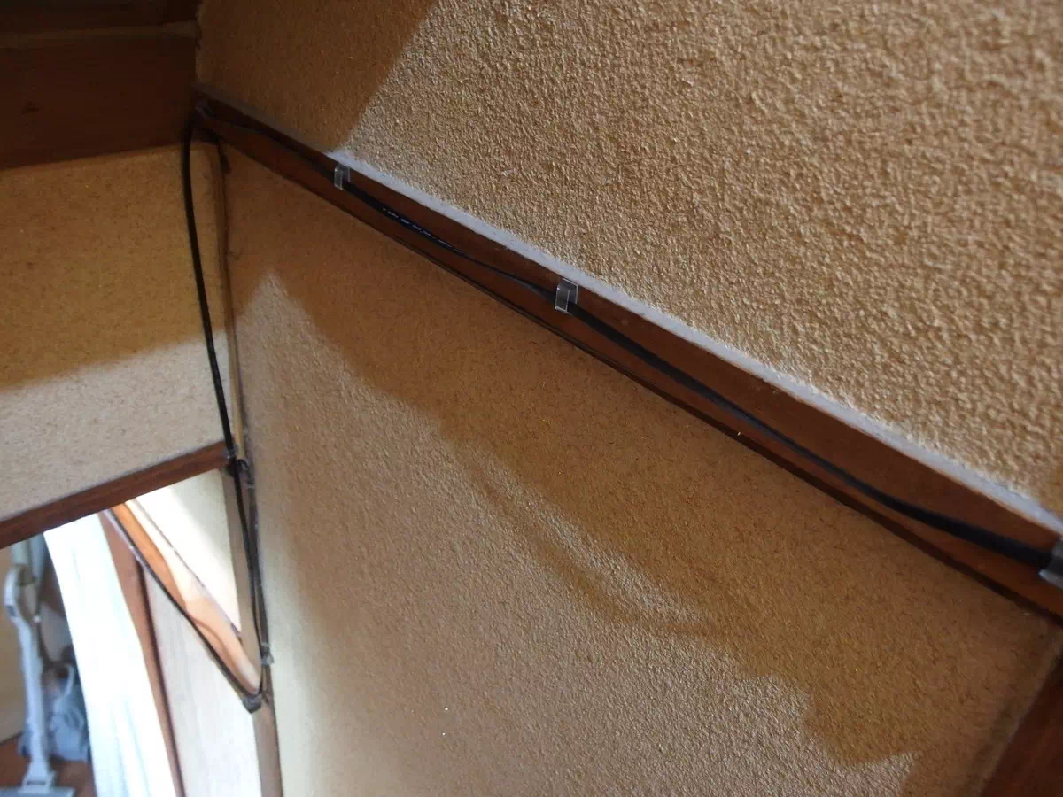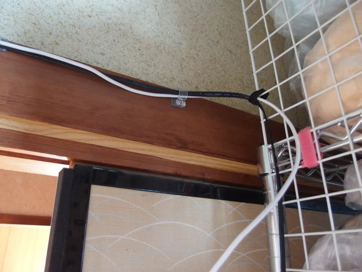 まずはルーターから引き戸上の梁にケーブルを固定する部品を取り付けて配線していきます。