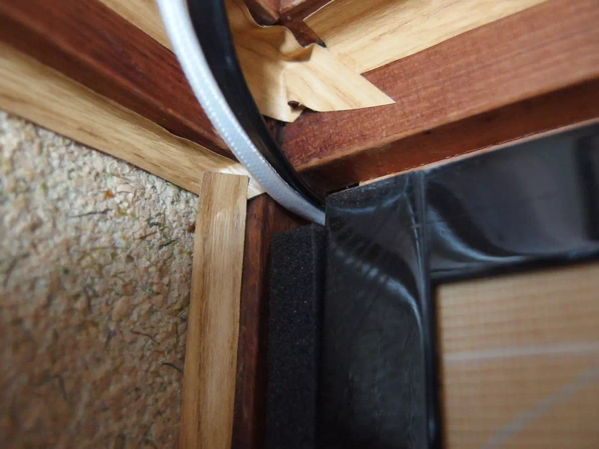 引き戸に隙間テープを貼り付けて、ケーブルを通すところだけ少し隙間ができるようにします。