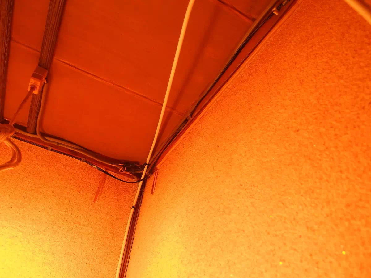 古い家なので、ブレーカーからの電気ケーブルが1F天井付近に張り巡らされているので、そこに合わせるようにLANケーブルを這わせていきます。