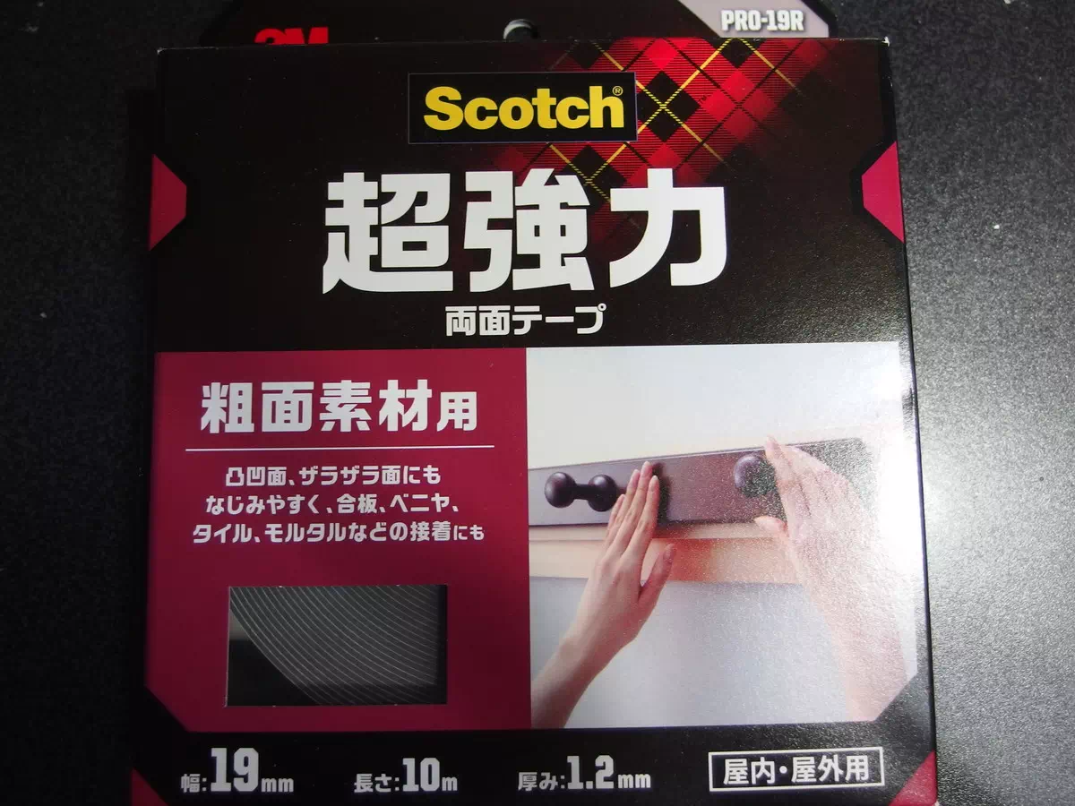 個人的にオススメのScotch超強力両面テープ(粗面素材用)です。