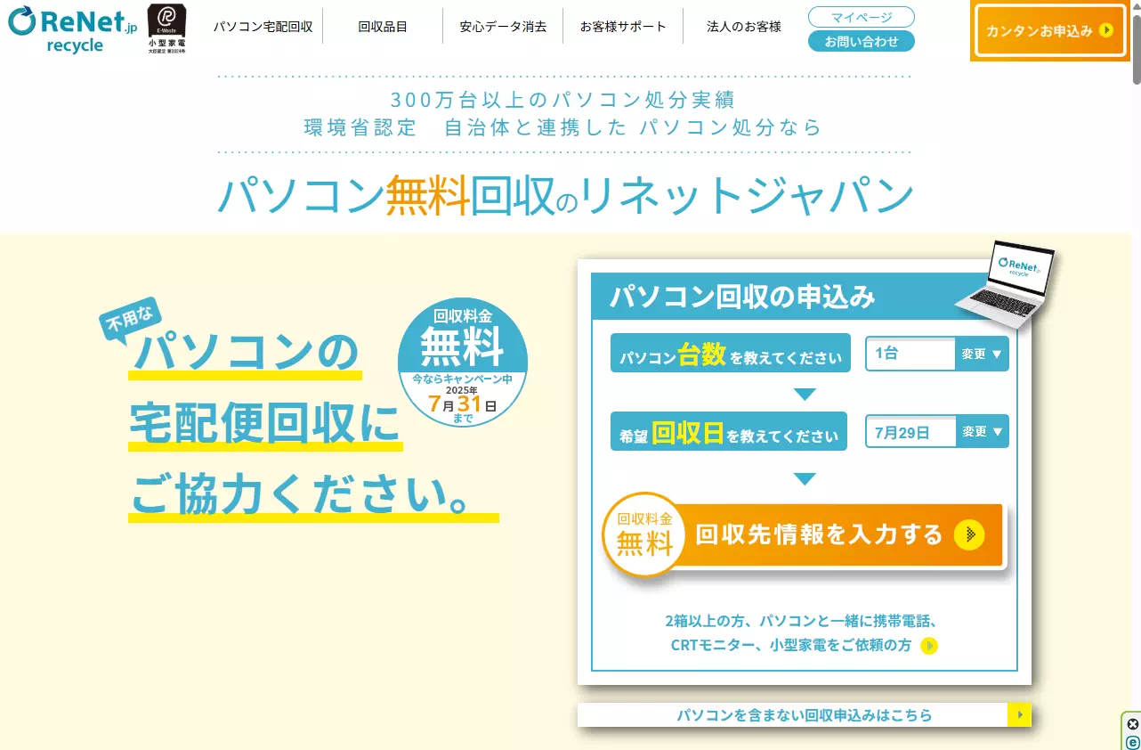 よく見てみると、回収料金無料キャンペーン中だそうな。