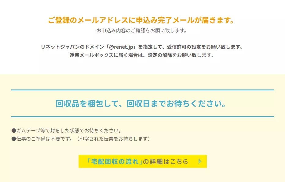 回収の際は送り状などは不要で、そのまま箱を渡すだけで終わりました。
