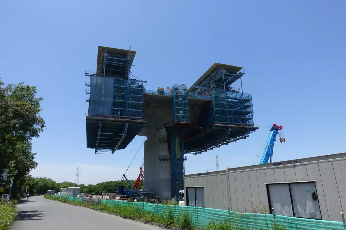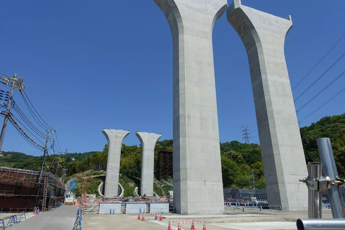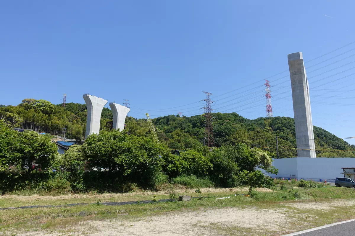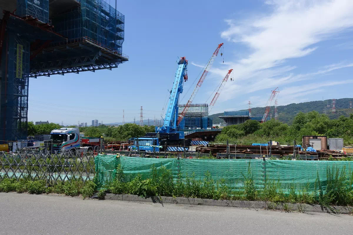 あ、新名神高速道路の橋脚工事が始まってましたね。
