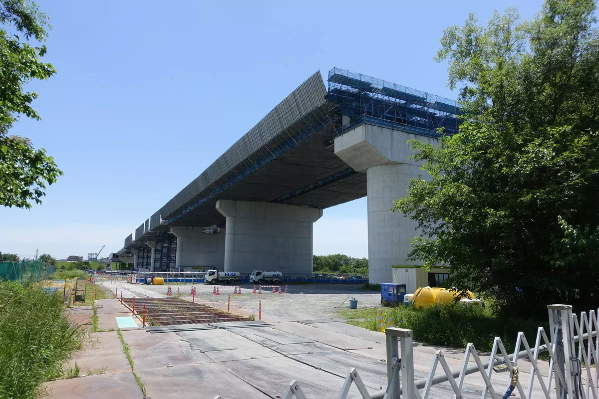 こちらは橋脚だけでなく、橋の上の部分もできつつあります。