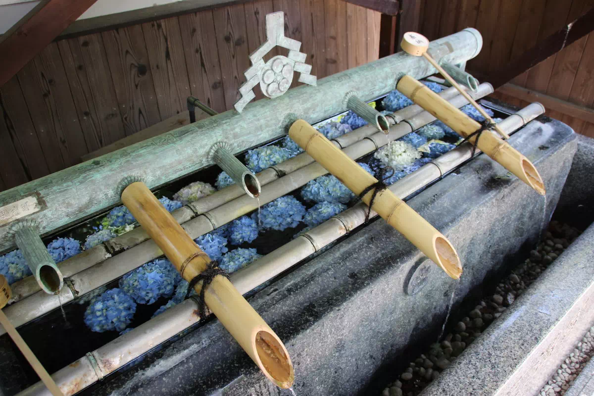 そして、手水舎も紫陽花仕様になっていました。