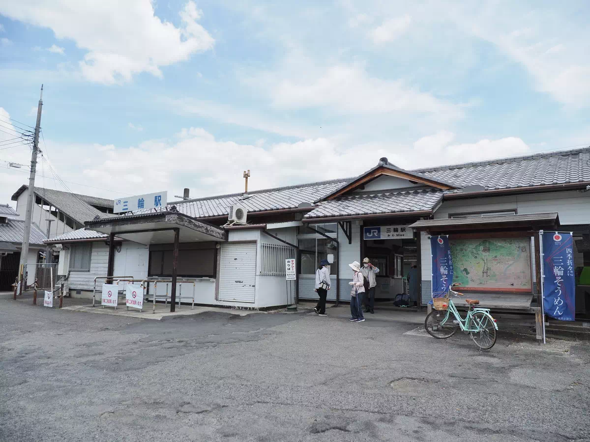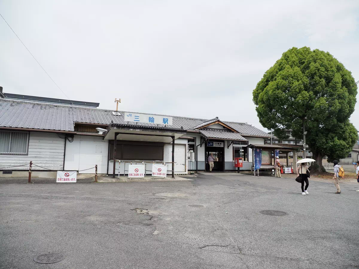三輪駅へ戻ってきたら、駅舎からぞろぞろと人並みが……