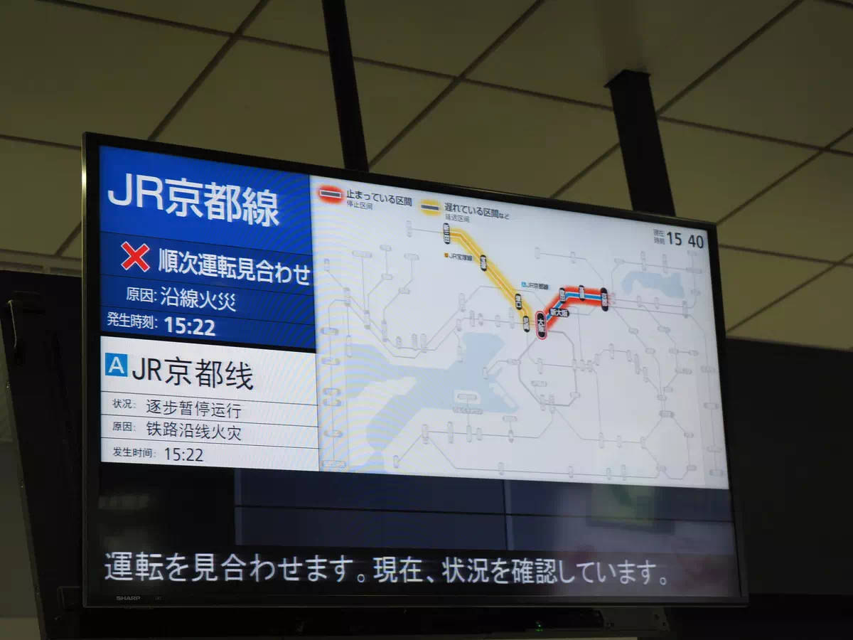 無事大阪まで戻ってきたのですが、電光掲示板を見てみると……