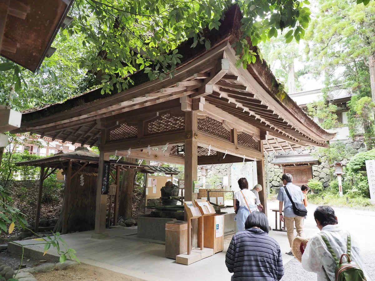 本殿横から入ると、御神水が汲める場所に行けます。