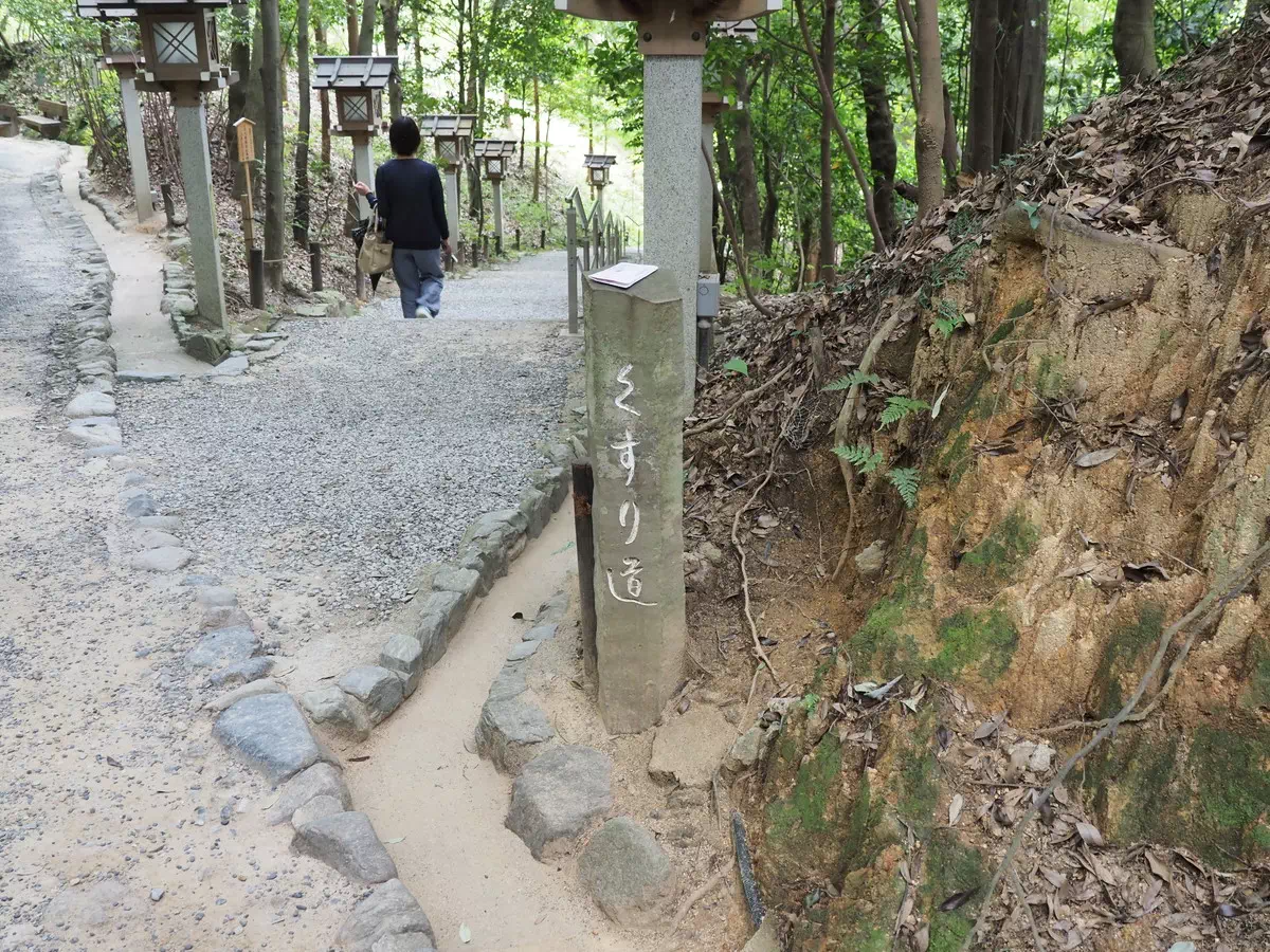 大神神社の祈祷殿の左側に「くすり道」があり、ここから向かいます。