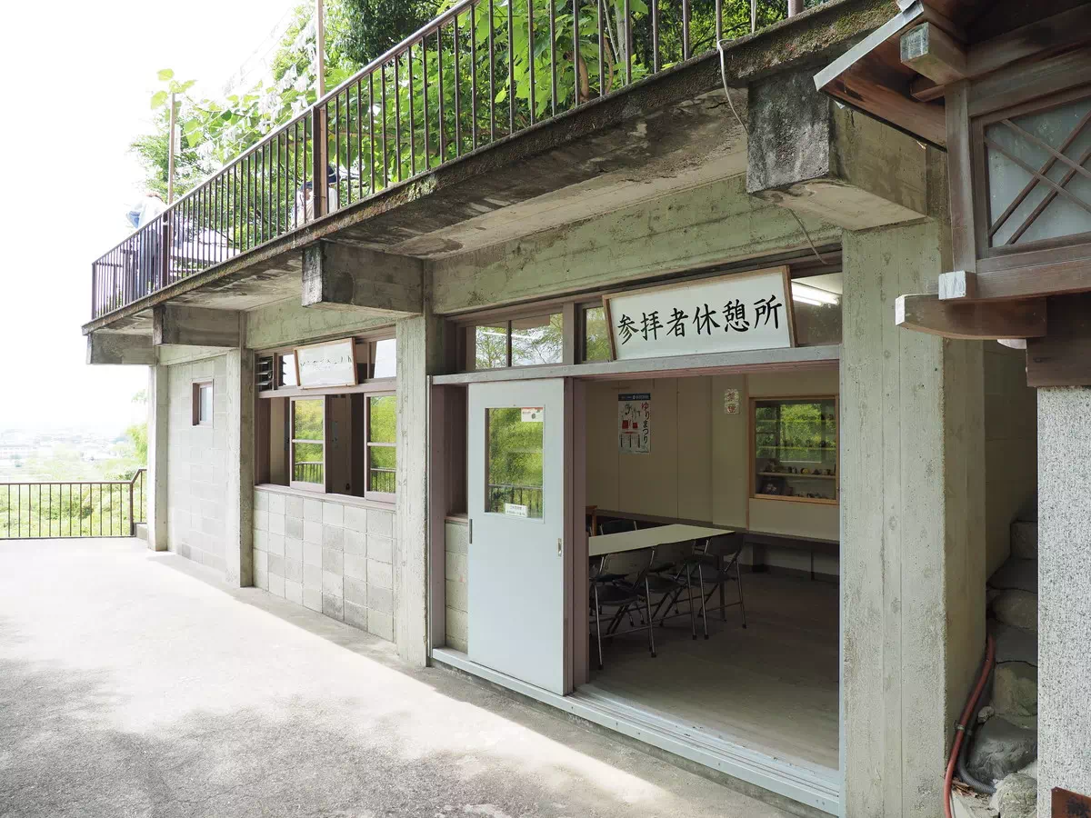 鳥居をくぐって階段を登り本殿へ向かい途中に休憩所があります。
